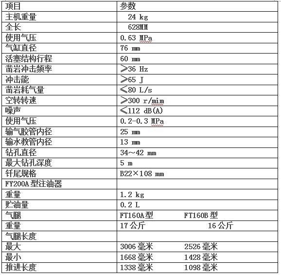 7655型氣腿式鑿巖機性能參數: