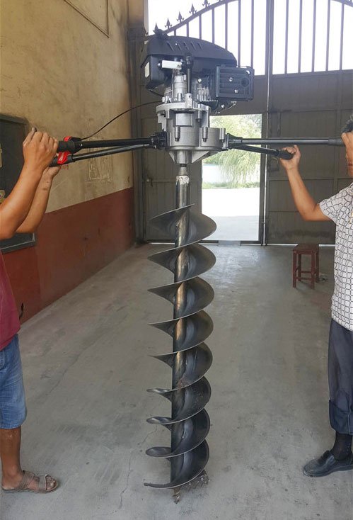 電線桿打洞機的耐用程度,跟配置的汽油機相關,采用國內名牌汽油機,機型功率強大,操作簡潔,使用方便,汽油機無需混合,更易保養。每小時只需用油0.6L,可打坑100個以上,可連續性作業而機器不發熱。雙人操作,安全可靠,是一款節能型挖坑機器。工作原理:以汽油機為動力,配置直傳式無級變速減速箱體,連接鉆頭旋轉進行挖坑作業,并且將坑內土帶出或旋出坑外。